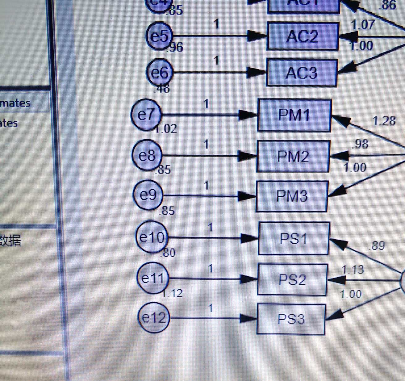 柚子L 发表于 2019-4-11 23:27 毕业论文问题急求大神们帮忙解决!!!<br> 1.我的模型未标准化的结构图如图,残差e12上的数字(查了一下 ...