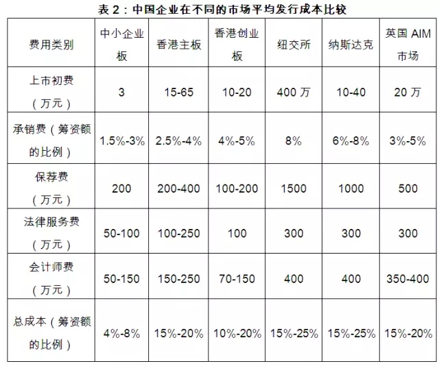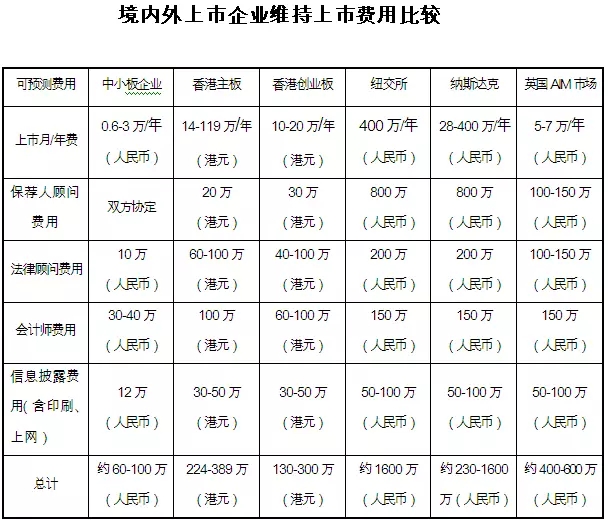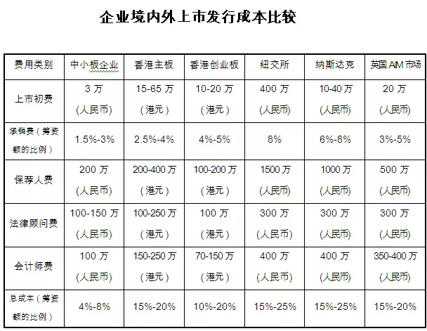 第一,首次发行上市成本较低。据统计,境内中小企业板的发行费用占筹资额的比例平均约为6.05%,基本上是其它市场的1/3。即使承销费有时超过收费标准,总体上仍比境外市场低。第二,每年持续支付的费用较低。境内上市公司的审计费用、向交易所支付的上市费用等维持费用,远远低于境外市场。而且,在境外市场上市,维护成本高,需要向在当地聘请的信息披露联络人以及财务总监等,需支付较大金额费用。据统计,中小企业板上市公司的维护费用约为100万元/年左右,约为其它市场1/6到1/3之间。