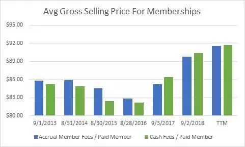 虽然管理层在多年前就曾公开过这一指标,但现在已经没有关于这一指标的确凿数据了。同样重要的是要注意,公司不提供执行会员资格在每一个国家,但这是一个双重小幅剑——国际加速增长,平均价格自然会下来由于不利的黄金/执行混合,但管理可以在理论上介绍了高管层更饱和的市场驱动更丰富的会员资格在未来。