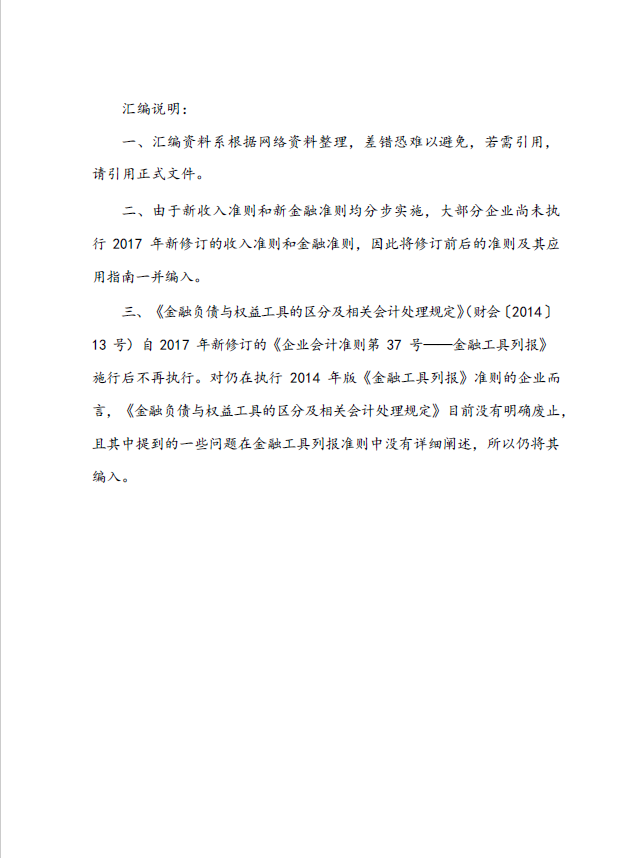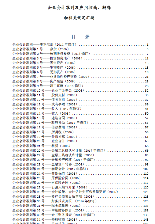 本资料包含所有企业会计准则、应用指南和企业会计准则解释汇编,制度新、内容全面,可复制粘贴,便于快速查询,适合系统学习。