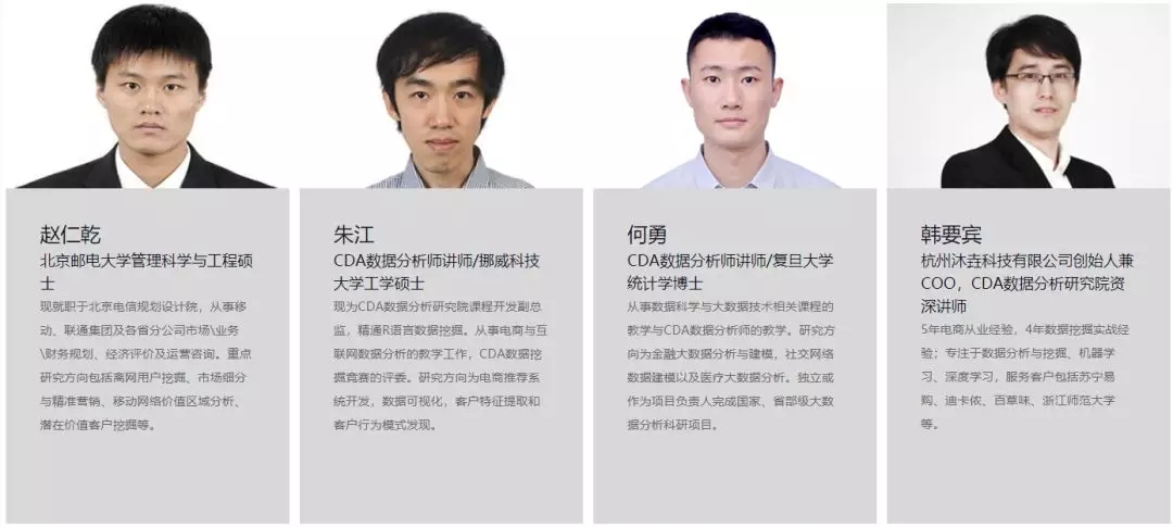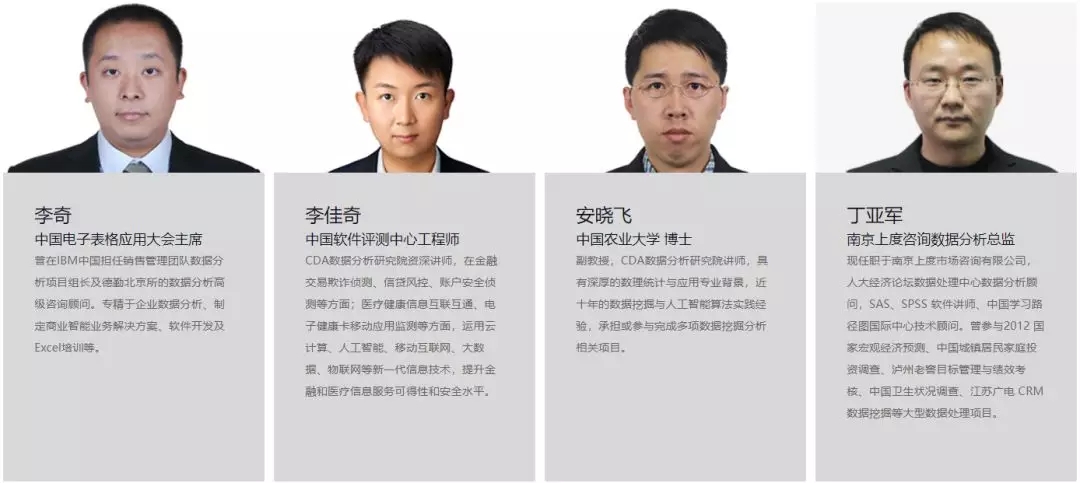 CDA 数据分析师就业班每期课程安排十数位专业老师授课,均来自学界、实务界相关领域的讲师、教授、专家、工程师以及企业资深分析师,名师荟萃,代表了国内数据分析培训的专业水平,可以更好地保证培训的学员既能学到扎实的数据分析理论知识,又能具备较强的利用软件解决实际问题的能力。