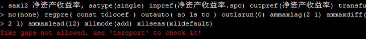 sax12 prof, satype(single) inpref(prof.spc) outpref(prof) transfunc(auto) regpre( const td ) outauto( ao ls tc ) outlsrun(0) ammaxlag(2 1) ammaxdiff(2 1) ammaxlead(12) x11seas(x11default)