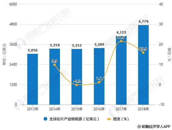 2013-2018年全球、中国芯片产业销售额统计及增长情况预测