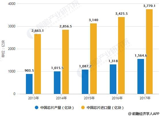 2013-2017年中国芯片产量、进口量统计情况