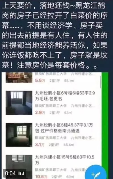 “不用谈经济学,房子卖的出去前提是有人住,有人住的前提是当地经济能养活你,如果你连饭都吃不上了,房子就是坟墓!”一位鹤岗的网友如此说道。