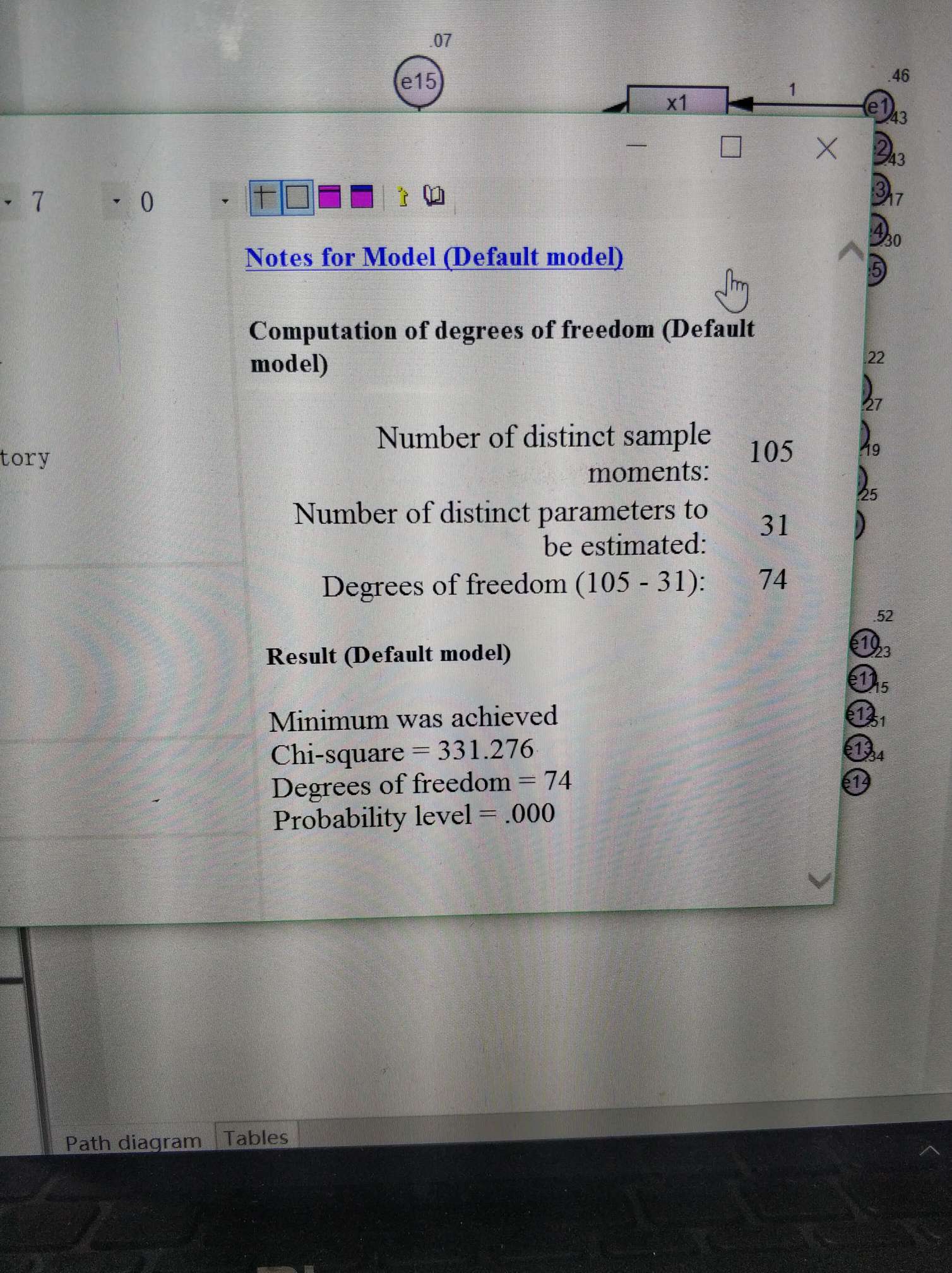 amos报表中probability level=.000表面模型很差吗?跪求大佬指导