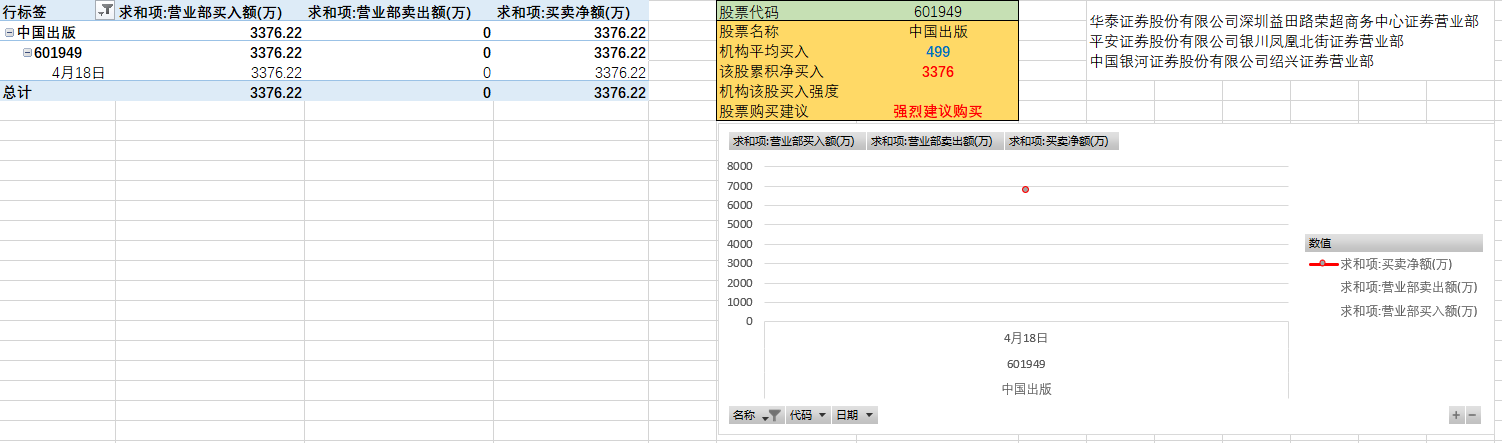 zozxoxcoc 发表于 2019-4-18 21:41 发哥,中国出版601949应该符合明天购入的标准吧?出现了拉萨团结路第二营业部和华泰深圳商务中心营业部。