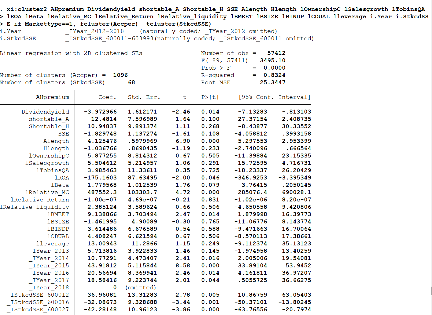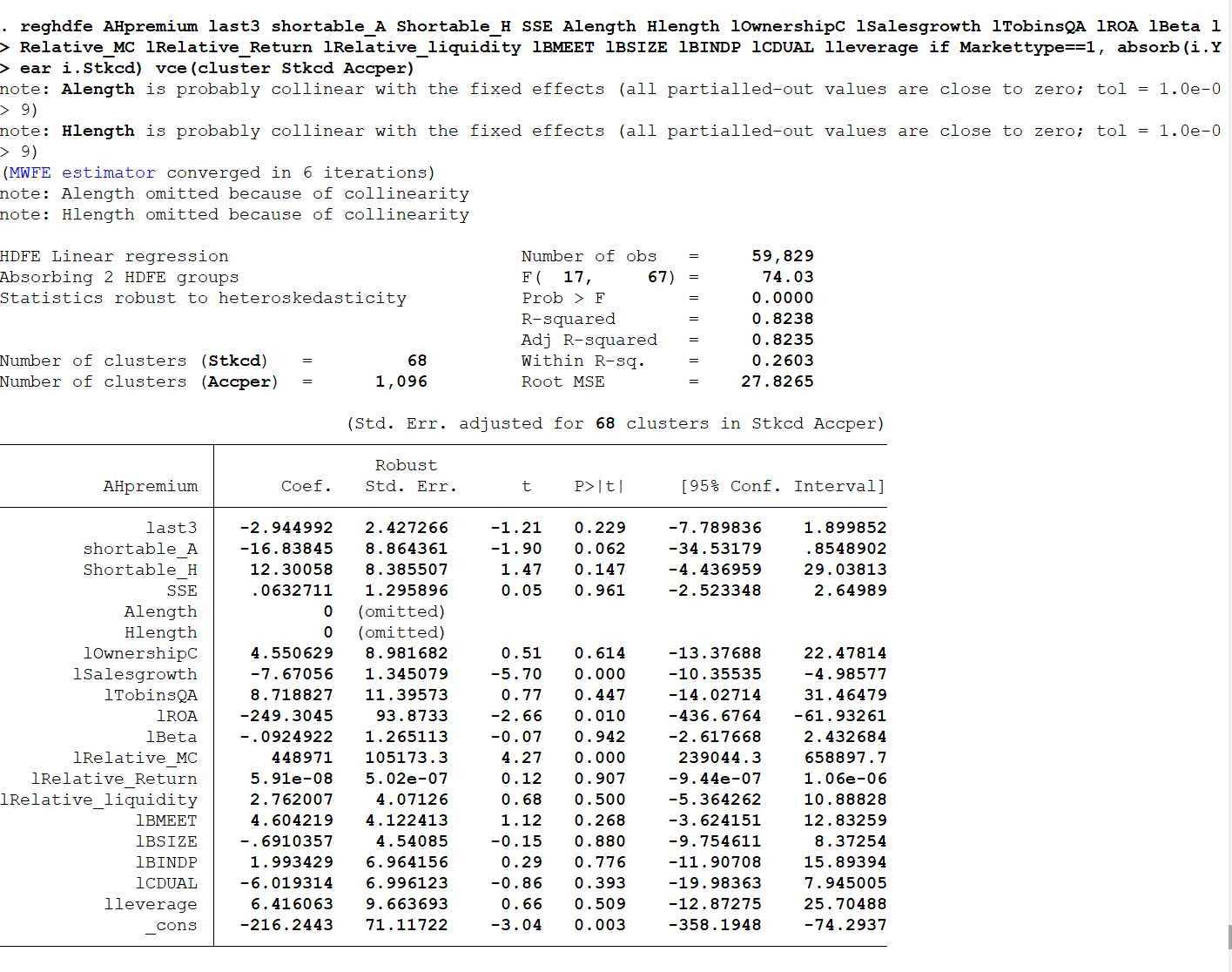 老师您好,我发现了一个新的问题,我发现当我用reghdfe只控制个体效应或只控制Year dummy的时候,A股自上市年份到每一年有多久(例如,股票1994年上市,对于2011年的数据,这个变量为7,对于2012年的数据,这个变量为8)这个变量都不会因为共线性被omit,但是一旦我同时控制个体和年份时,结果就会通知我 length is probably collinear with the fixed effects,请问这是为什么呢? 这种条件下,length算是与year dummy共线?还是与stock dummy共线?