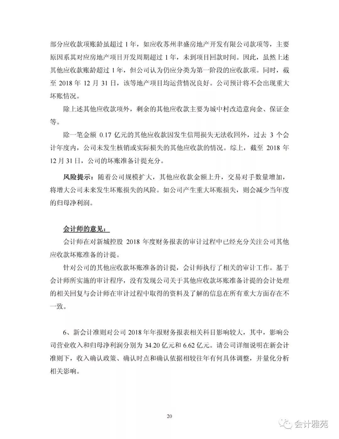 执行新收入准则增加利润6.62亿!一份值得学习的年报问询函回复