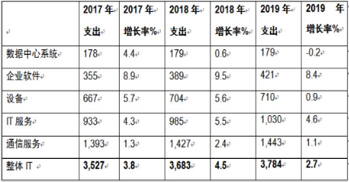 图7:全球IT支出预测(单位:10亿美元)