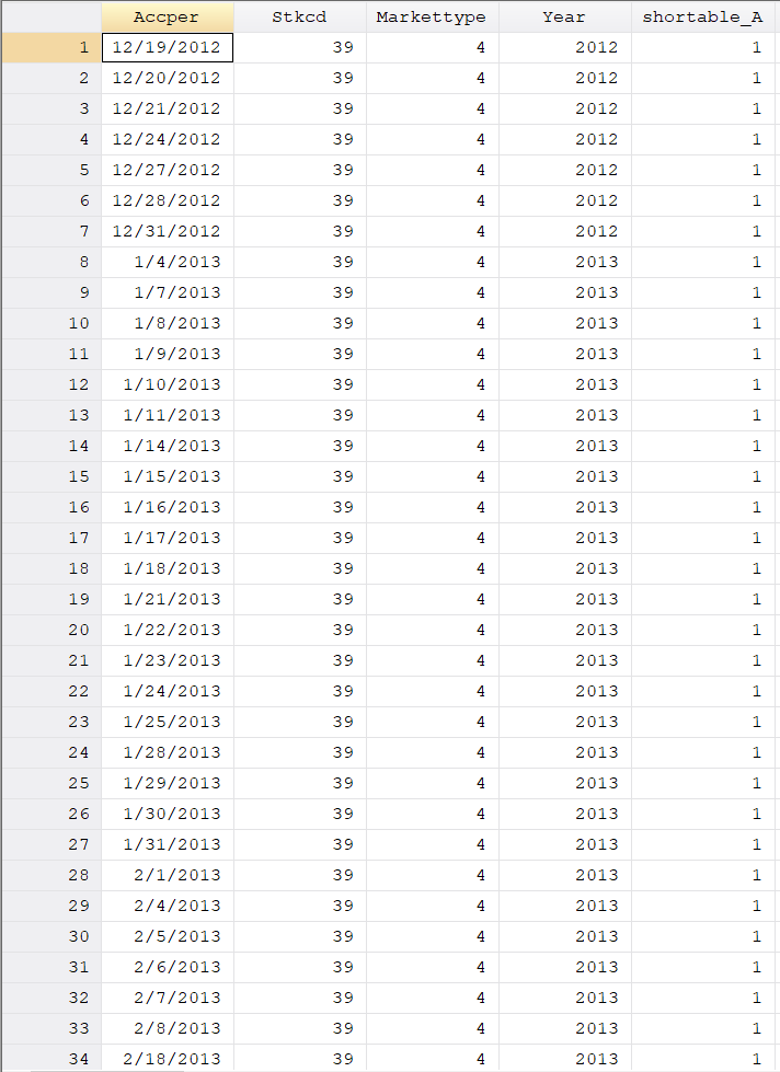 求助!谢谢大家!目前我有93支股票,日数据,6年数据,当前将是否可以卖空设为dummy variable:Shortable, 1为可卖空,0为不可卖空,我现在想生成一个变量,可以统计出每一支股票,每一年可以卖空的天数是多少,即在每一年,每一支股票shortable dummy=1的天数有多少,如果用count命令,我自己尝试了一下,只能一支一支股票,一年一年统计, code 如下: count if shortable==1&Year==2012&Stkcd==39