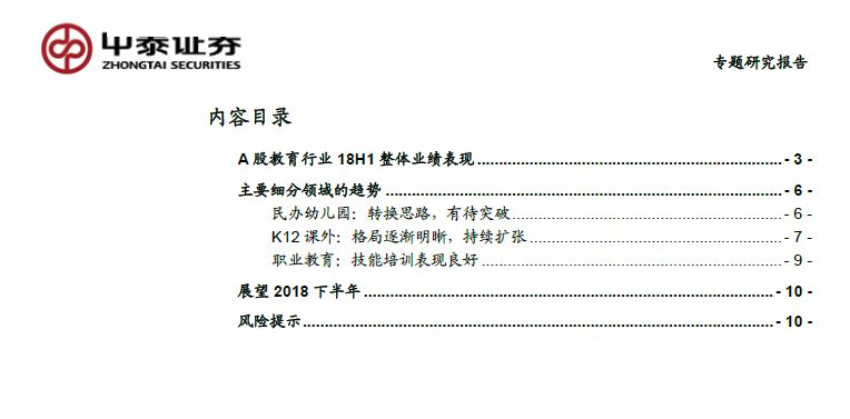 A股教育行业中报总结:民办幼儿园业绩承压,K12教培格局初现-20180903-中泰证券-11页.pdf