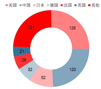 图表1:世界500强公司数量国别占比
