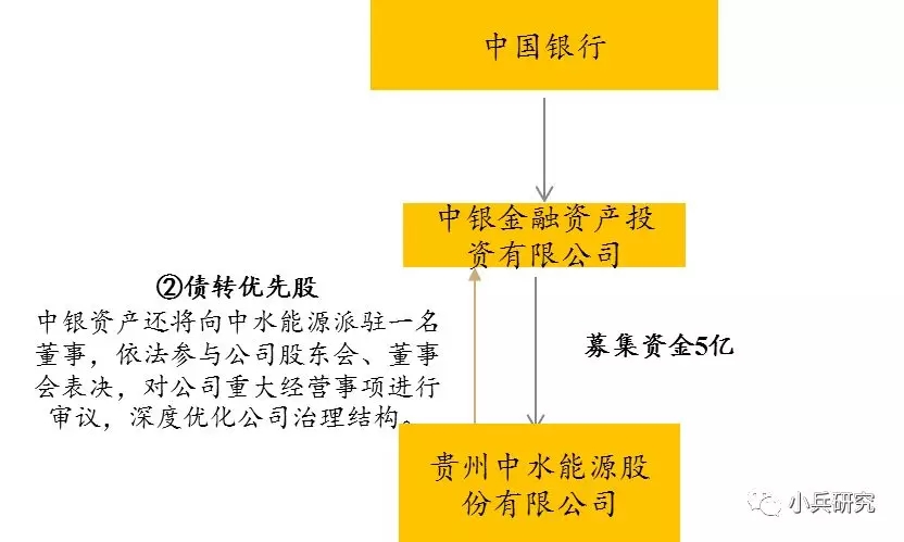 2018年12月19日,中国银行下属债转股实施机构中银金融资产投资有限公司以国家电投集团贵州中水能源股份有限公司为标的实施的债转优先股项目正式落地,全国首单非上市非公众公司债转优先股项目正式落地。