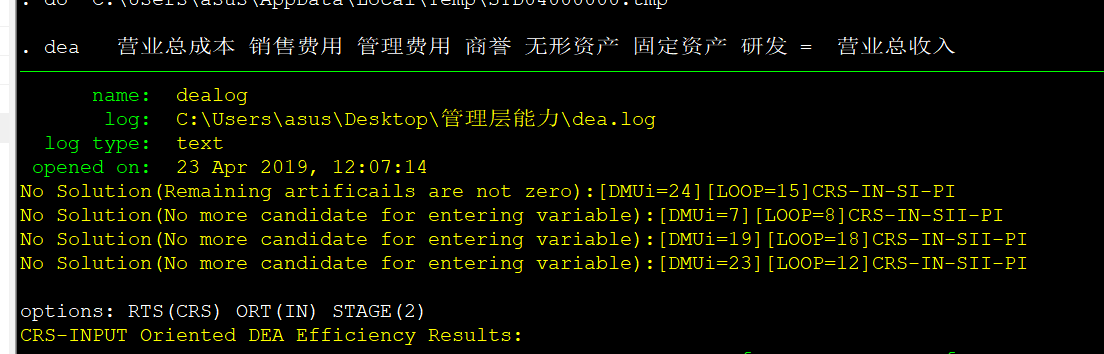 如图,用stata做DEA时,出现这两类错误,请问如何解决,另外请教一下,怎么直接分年度分行业计算