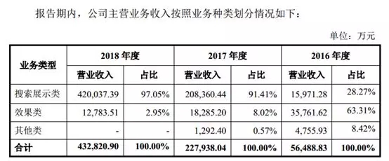 2016年至2018年,发行人综合毛利率分别为20.31%、6.24%和4.38%,招股书披露毛利率下滑主要是受搜索展示类业务收入占比快速提升的影响。2016年至2018年,搜索展示类业务毛利率分别为4.26%、4.65%和3.79%,搜索展示类业务已占据其营业收入的97%。毛利率低的可怜,必须拥有规模才能保证盈利,而规模要大规模持续增长,觉得还是有很大的压力。