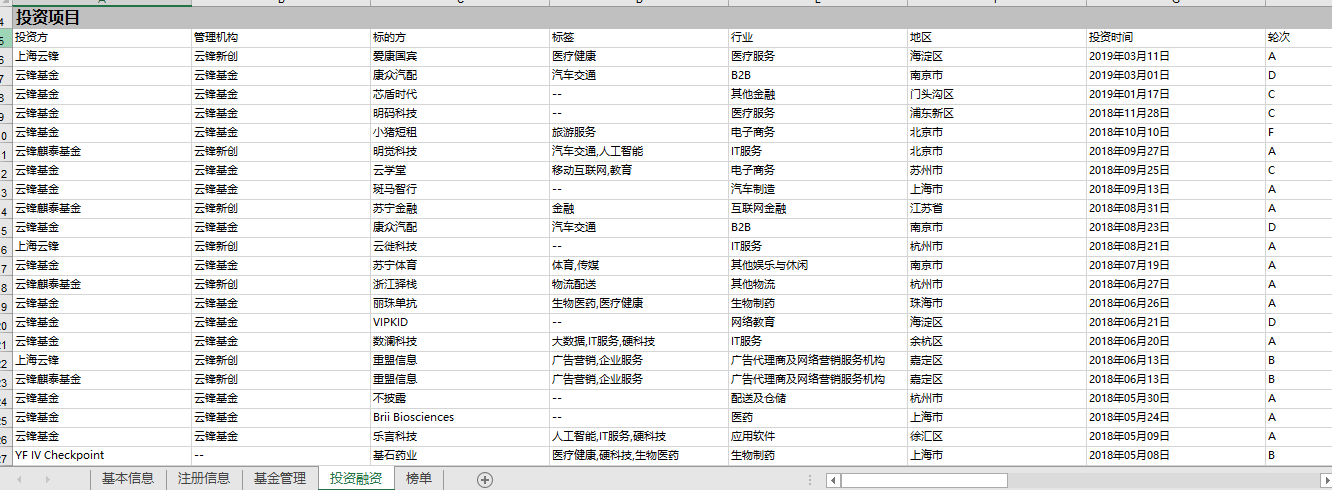 云锋基金-投资项目截止20180425.xls