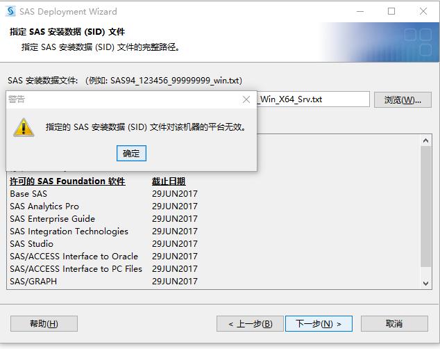 小庄林 发表于 2019-4-25 13:46 SAS9.4 , Windows 10系统,安装过程提示安装数据(SID)文件对该机器的平台无效,如附件所示,请问这个是操作 ...