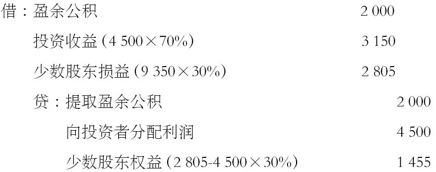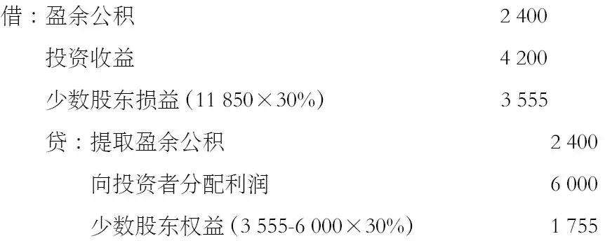 前已述及,合并所有者权益变动表只反映母公司的所有者权益变动,所以对于子公司当期提取的盈余公积要全额抵销,借记“盈余公积”项目,贷记“提取盈余公积”项目;对于向投资者分配的利润,其实就是母公司收到的股利,借记“投资收益”项目,贷记“向投资者分配利润”项目。这样一方面抵销了母公司的投资收益,切合了实体理论的原理,同时抵销了子公司的利润分配项目。
