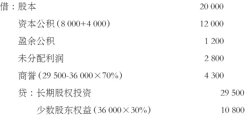 3.确认子公司自合并日后资本公积等所有者权益增加归属少数股权部分(本例中没有涉及)