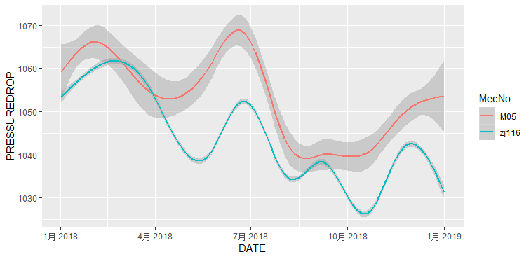 我用geom_smooth()函数作数据的平滑曲线,如下图所示,图中产生的阴影部分区域代表什么统计含义呢?