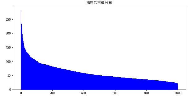 我们得到一个直观上很显著的统计特性——中证 1000 的分布最为均匀,首尾差异较小,沪深 300 的市值分布很不均匀,有部分股票市值极大。