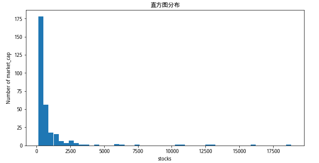 通过绘制直方图,可以看到指数成分股(以沪深 300 为例)的市值分布情况: