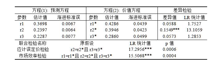 Song123666 发表于 2021-9-14 15:55 请问下,结果展示中市场效率检验LR统计值15.5068、p值0.0004是怎么得到的,在Stata回归结果中没有看到? ...