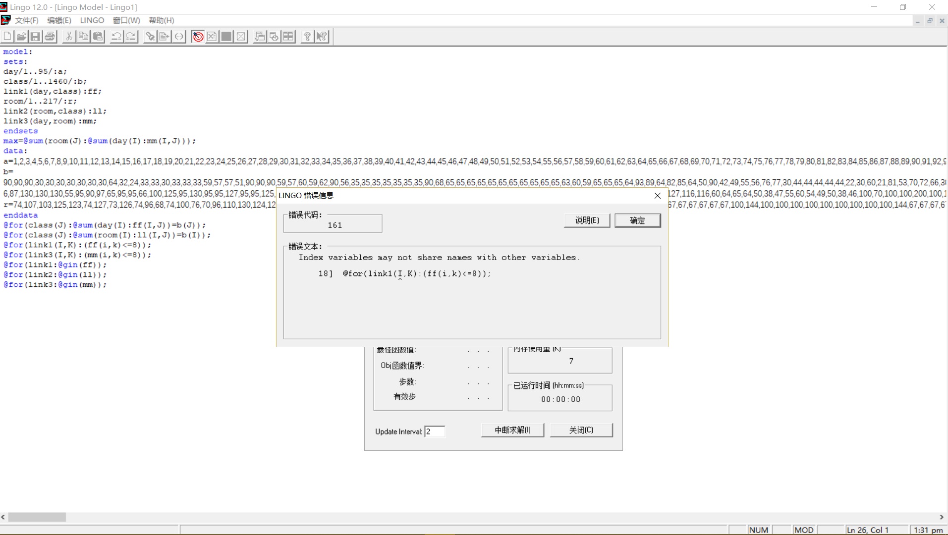 max=@sum(room(J):@sum(day(I):mm(I,J)));