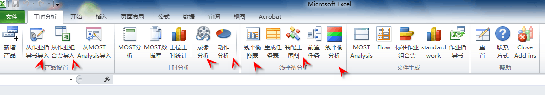 用Excel 开发的Excel Add-in,工序排拉分析、平衡分析、动作分析及组合分析等