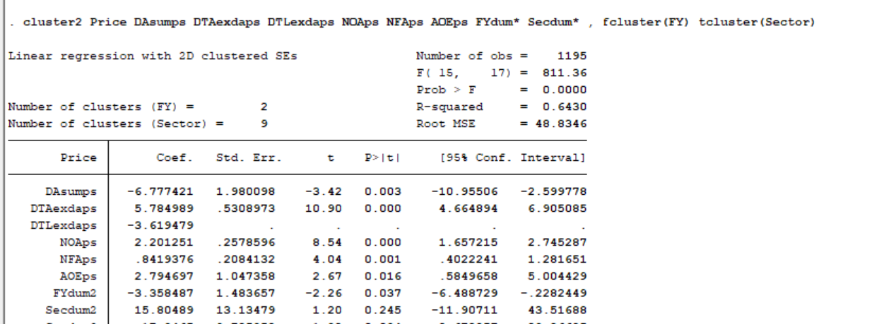 楼主问题解决了吗?我是按照行业cluster之后没有整体的F值和P值,不知道是什么原因