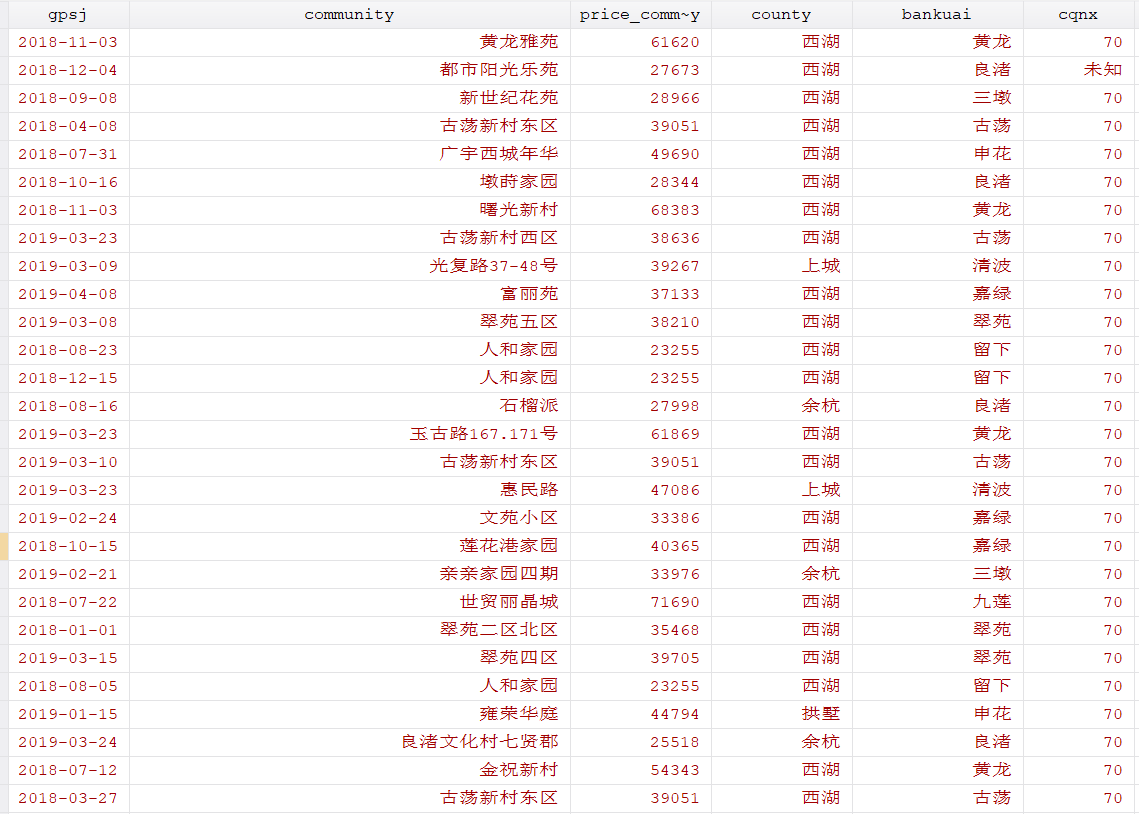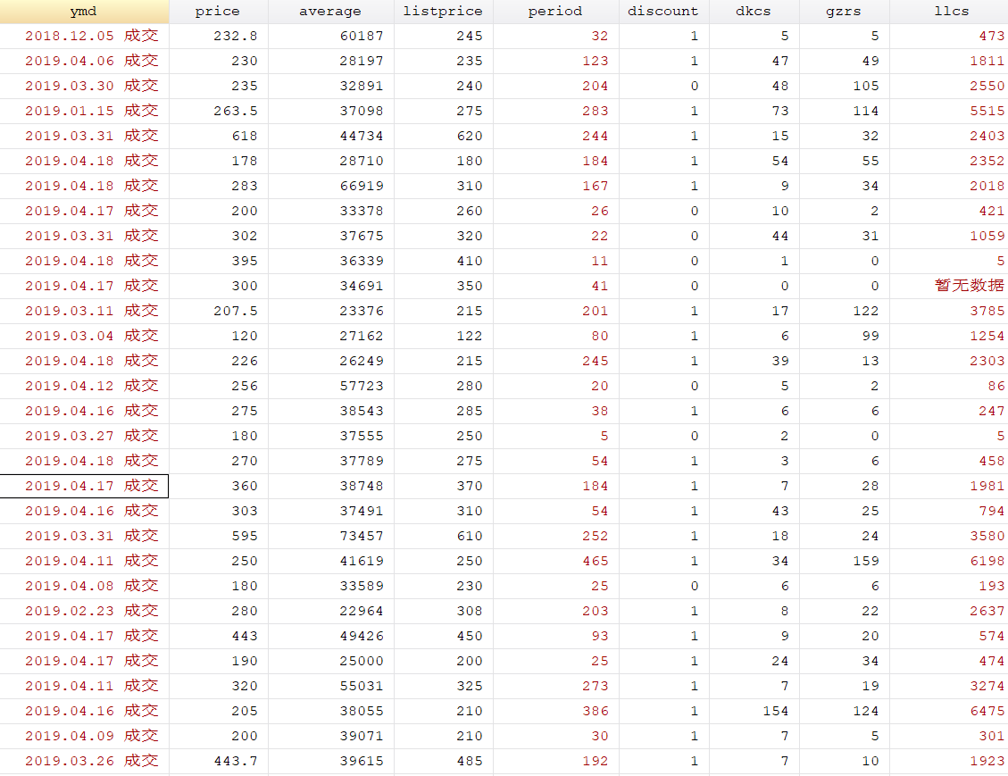 链家网房屋成交记录,包括每一套房屋的成交价、成交时间、面积、小区、行政区等信息。详情见图,或者附件中的杭州样本。有意使用者