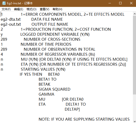 如题,用Frontier 4.1 进行SFA随机前沿分析,数据如图所示