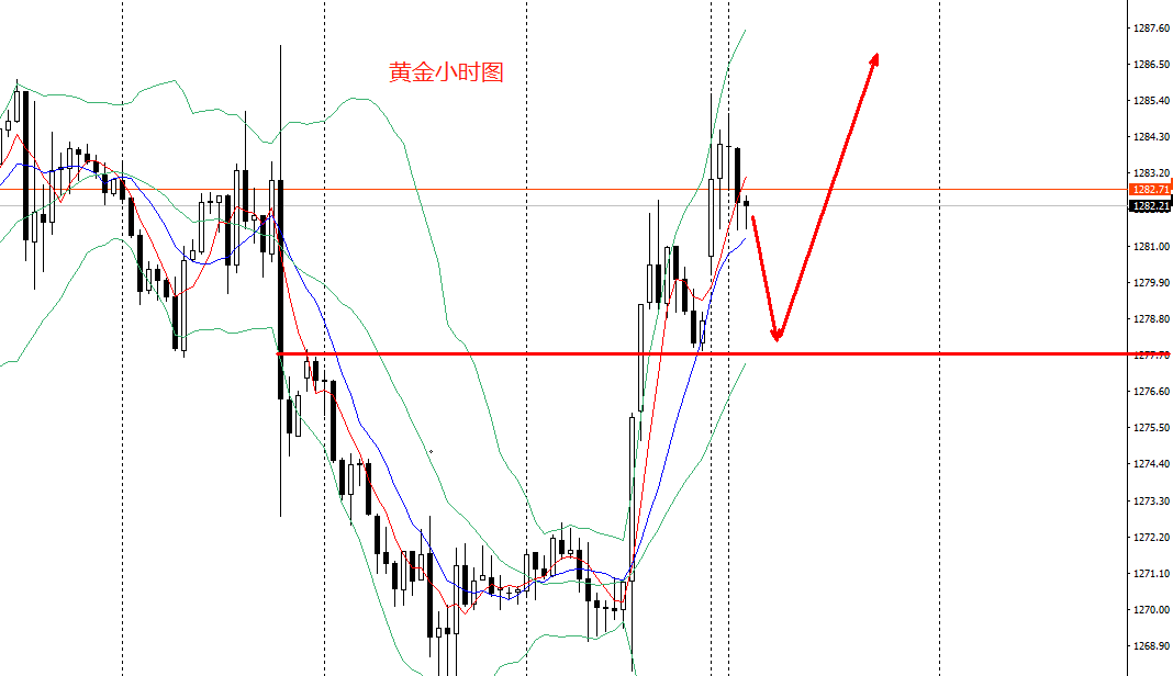 黄金:回调1277—78多,止损1272,目标1285。若上方触及1288空一次,损在1293,目标1280附近。