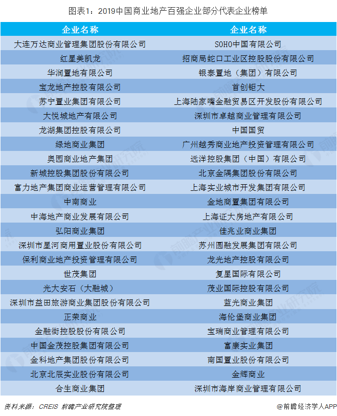 据榜单显示,大连万达商业管理集团股份有限公司、红星美凯龙、华润置地有限公司、宝龙地产控股有限公司以及苏宁置业集团有限公司等企业成为了2019中国商业地产百强企业。