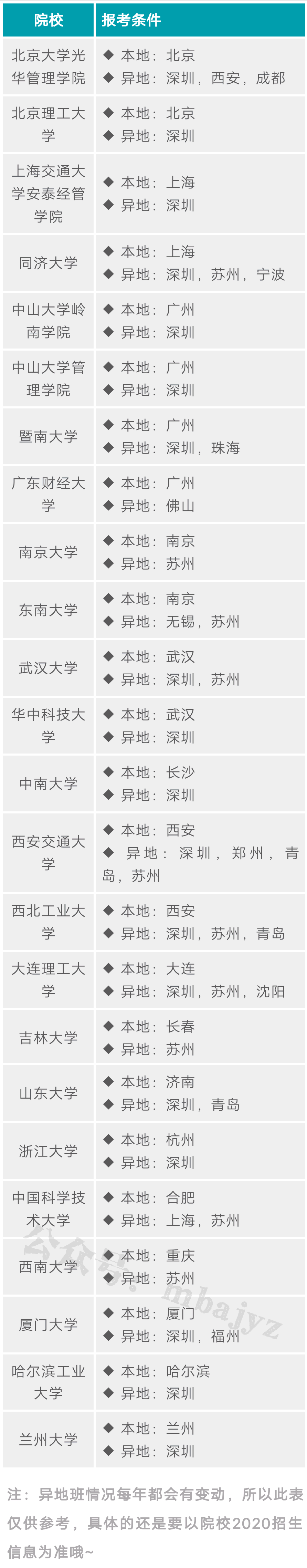 MBA异地班汇总