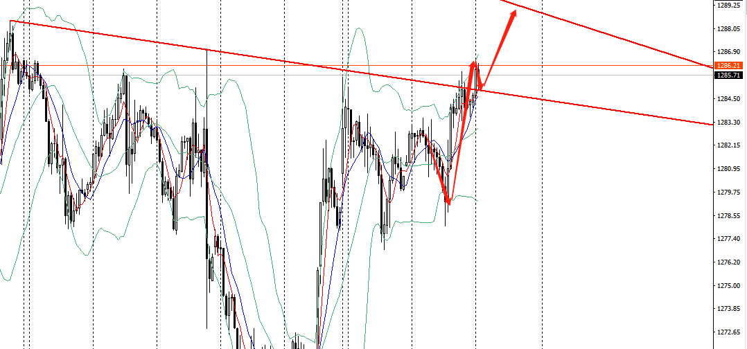 黄金早间可以直接在1285附近进场多单,等到回落到1283附近可以继续多,向上突破看至1290一线,我们防守位置可以在1280位置。