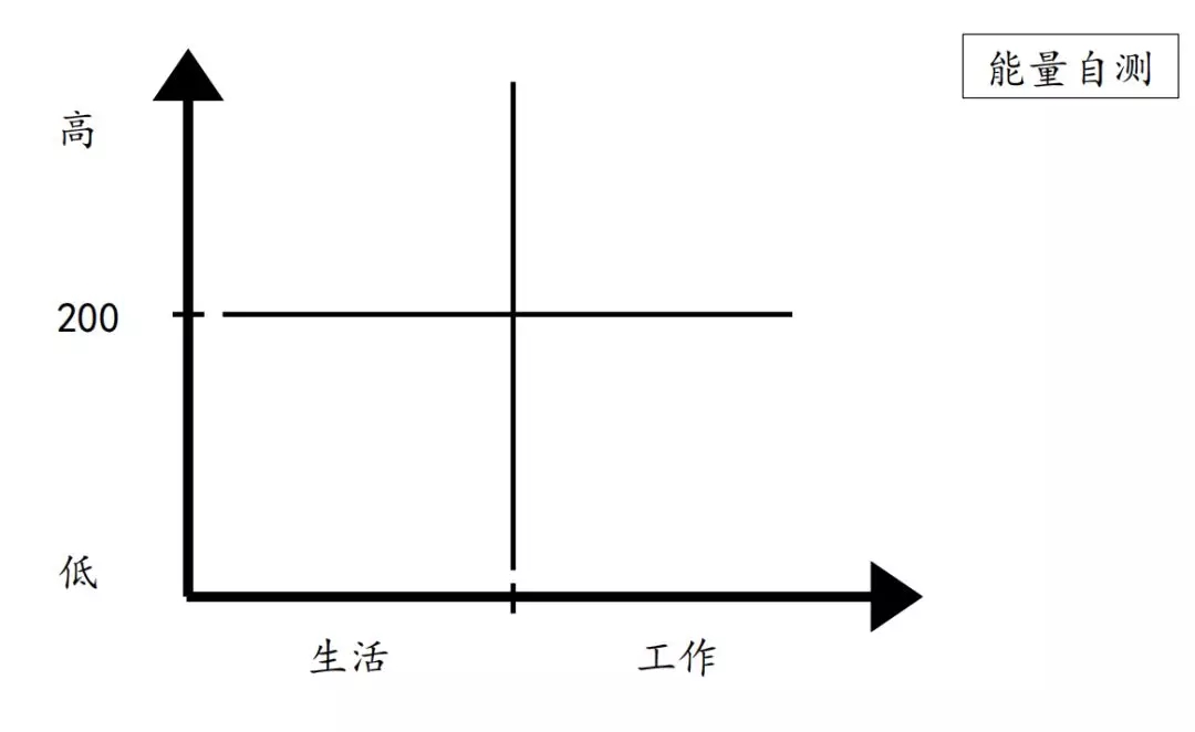 如何让我们用这个框架来对自己的过去进行一个盘点?你可以画一个四个象限的图,横坐标是生活和工作两个维度,纵坐标是高分和低分,以200分为界。