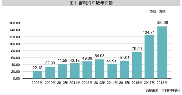 吉利整合式创新“逆袭”之路前后经历了两次战略转型,第一次是2007年从低价战略转向质量战略,第二次是2014年由质量战略全面升级至品牌战略。两次转型并非一蹴而就,是应对阵痛和挑战的持续创变,从吉利发展历程和近年销量变化(图1)来看,每一次战略升级和紧随其后的并购与整合,都促成了新的飞跃。