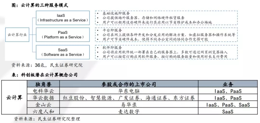 细分行业1:云计算公司适用估值方法云计算行业根据所提供的服务不同,可分为IaaS、PaaS和SaaS三种模式,当前有望在科创板上市的云计算公司多以前两种模式为主。云计算公司大多仍处于成长期,随着市场需求逐渐打开收入持续增长,但受高额研发投入影响,公司难以实现稳定盈利。