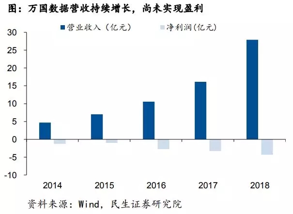 与美股其他云计算公司相似,2014-2018年万国数据的营业收入持续增长,但仍尚未达到盈亏平衡,因此应采用PS对公司进行估值。