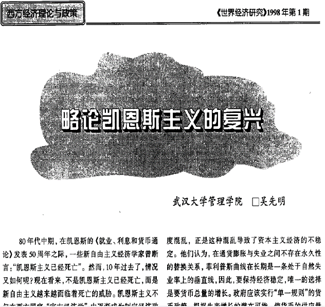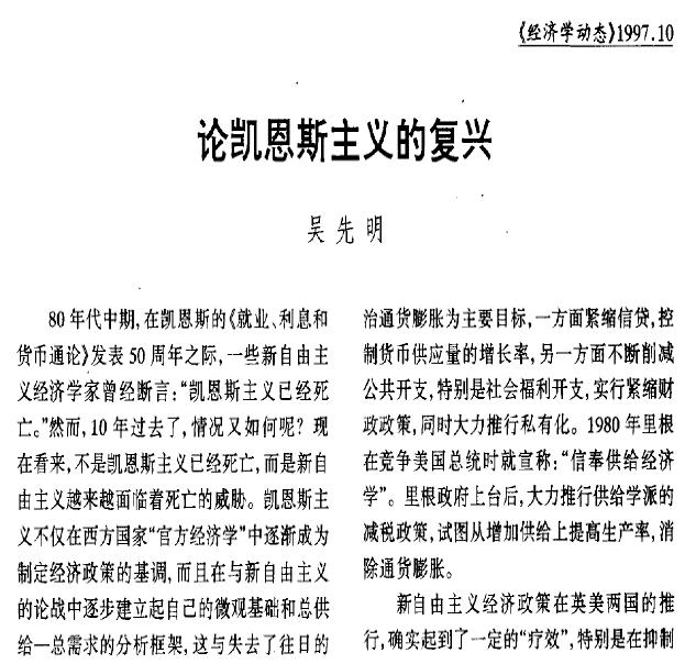 1、论凯恩斯主义的复兴——略论凯恩斯主义的复兴