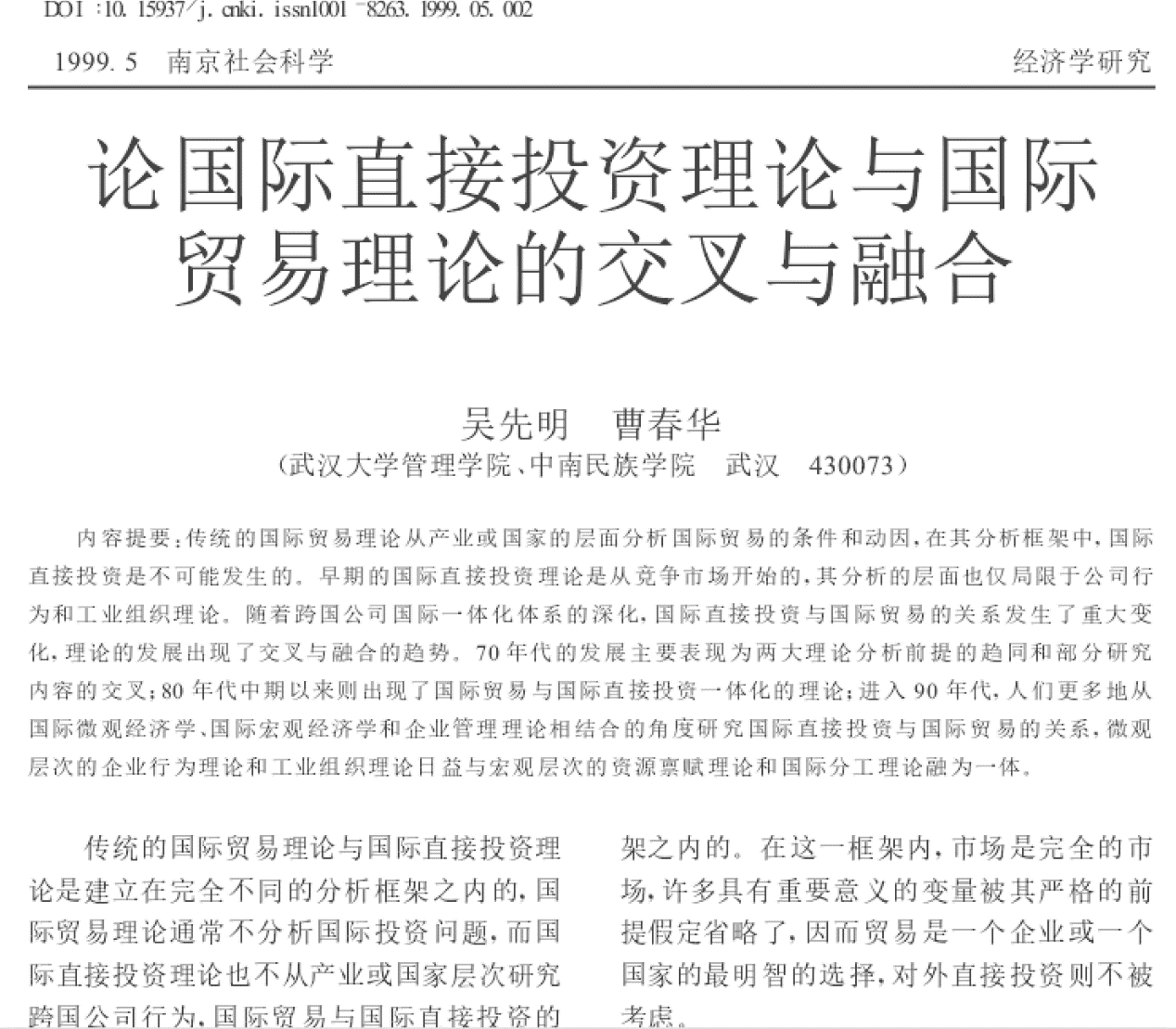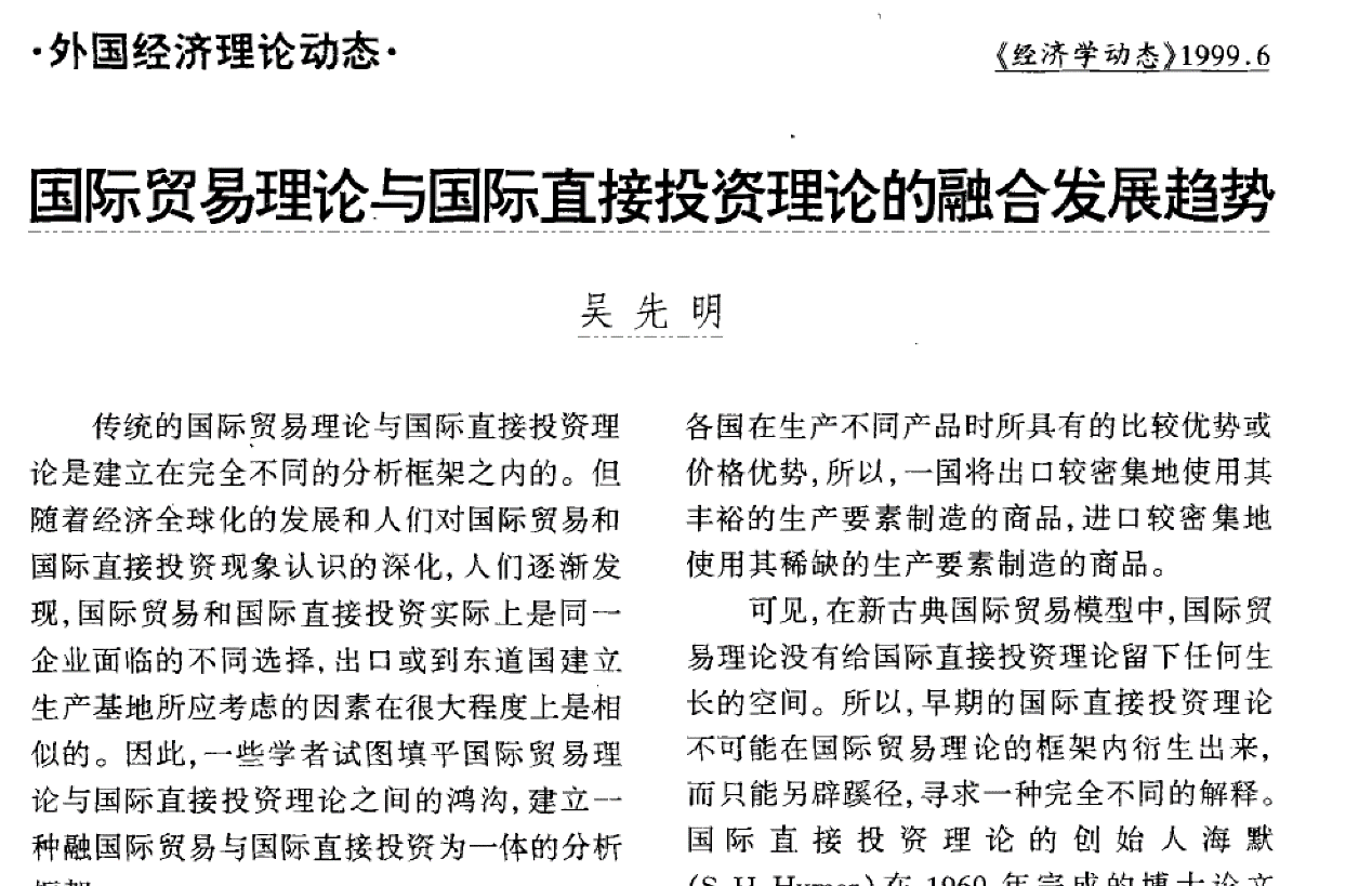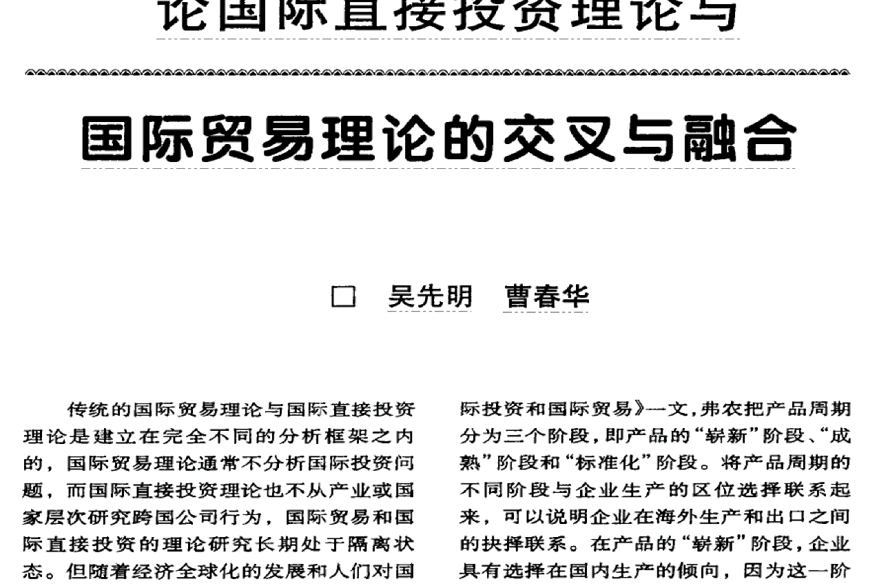 2、国际贸易理论与国际投资理论的交叉与融合(同文共投5本不同杂志)