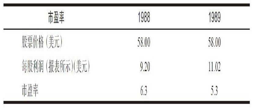 ①1987年年底报告的流通股数量包括5110万普通股和450万优先股。我所用的优先股价格是50美元,因为它们是该公司对这类股票的赎回价格。而且,彼时该优先股还有一个略低于10年期债券的收益率。所得的估值相当于388万份普通股的价值。我这里没有考虑股票期权,因为该公司把它们说成是“无关紧要”之列。