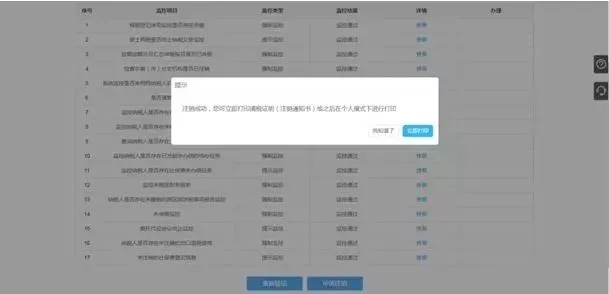 2.点击“确定”后,可以选择打印未结事项告知书,按照未结事项告知书要求准备材料至线下办理。