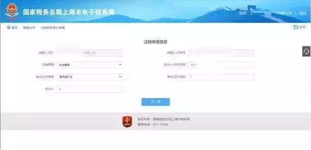 选择注销原因、经办人身份证件类型,填写经办人手机号码、身份证件号码、经办人姓名。