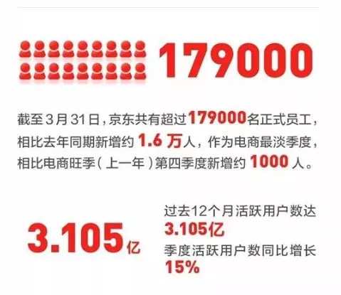 为了击破谣言,京东一不做二不休,干脆在财报中直接放出了员工数量增长情况:截至2019年3月31日,京东共有179000名正式员工,比去年同期增长了16000人。