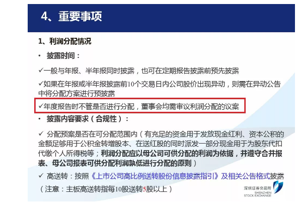利润分配是每家公司年度必考题之一,投资者也很关注。每年深交所年报培训都会强调: