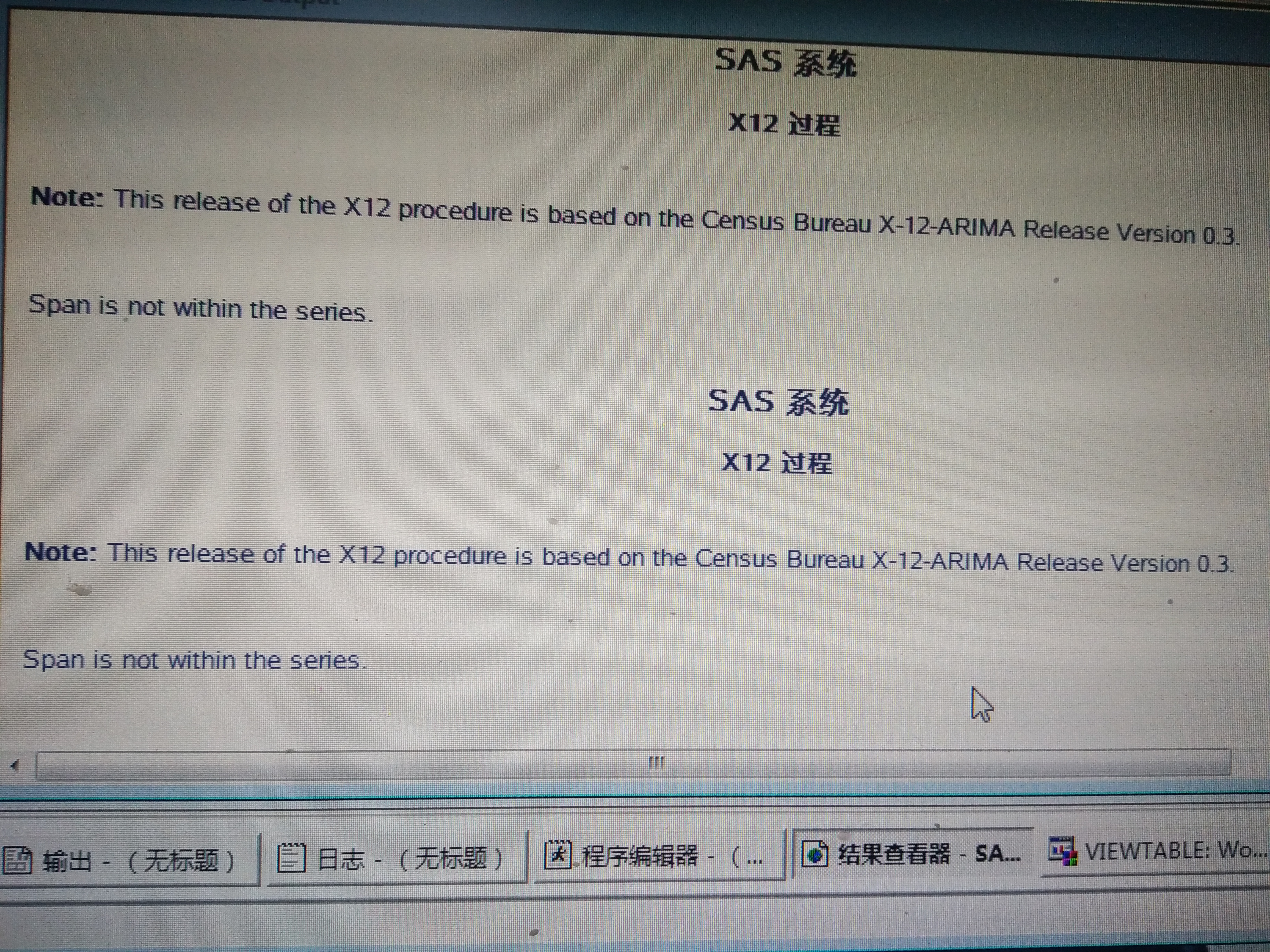 本人用SAS9.4做X-12-ARIMA,程序运行后显示如下,有人知道该如何解决吗?