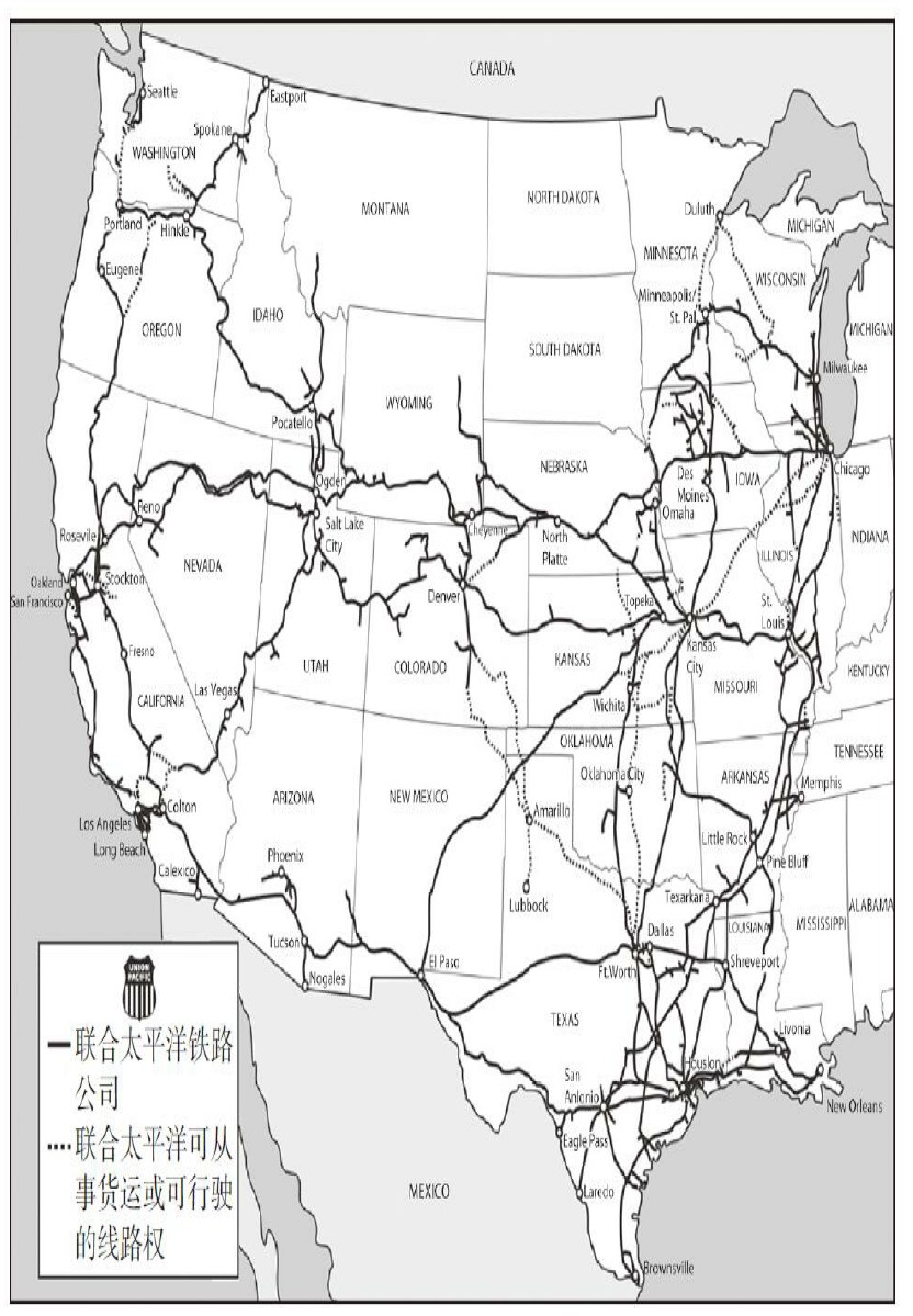 就像你能看到的,联合太平洋公司和北伯灵顿公司,在中部平原和西海岸区域,有不少的竞争线路。 鉴于这个事实,两家铁路公司竞争的运营节点还必须包括服务的价格高低、服务的准时性和服务的品质。表19-3有摘自联合太平洋公司2008年度报告的运营指标。